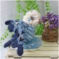 浴びをしている最中の羽を広げているポーズのあみぐるみアレンジメントです。ビーズを縫い止めて水しぶきを表現しました。