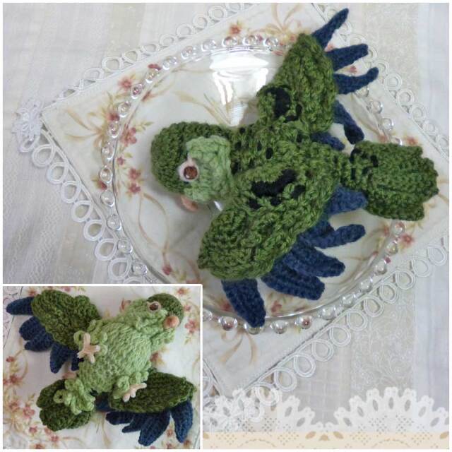 遊んでいたり水浴びして翼を広げゴロンと転がっている所を編みました。