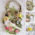 羊毛&糸刺繍の飾りのついたミニバッグ。上部2/3が布を格子状に組んだシースルーになっています。マチがありませんので小物などちょっとしたものを入れる時にご利用ください。持ち手のナスカンを外してバッグなどに下げる事ができます。巾着もセットになっていますので細かいものはこちらに入れてお使いください。ミニミニ編みぐるみの飾りはブローチになっているので他で使う事もできます。