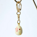 木製・アクリル絵の具・ポリウレタンニス仕上げです。部分的に彫りを入れて彩色しています。耐久性のあるニスで仕上げておりますが木製ですので強い衝撃などの破損には充分お気をつけください。