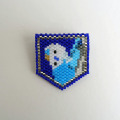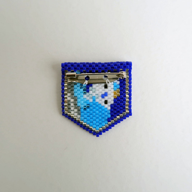 丈夫なナイロン糸でビーズをステッチしました。裏面にはシンプルな引っかけブローチ金具がついています。上下のフチは強化してありますが、引っかかり等にはご注意ください。