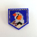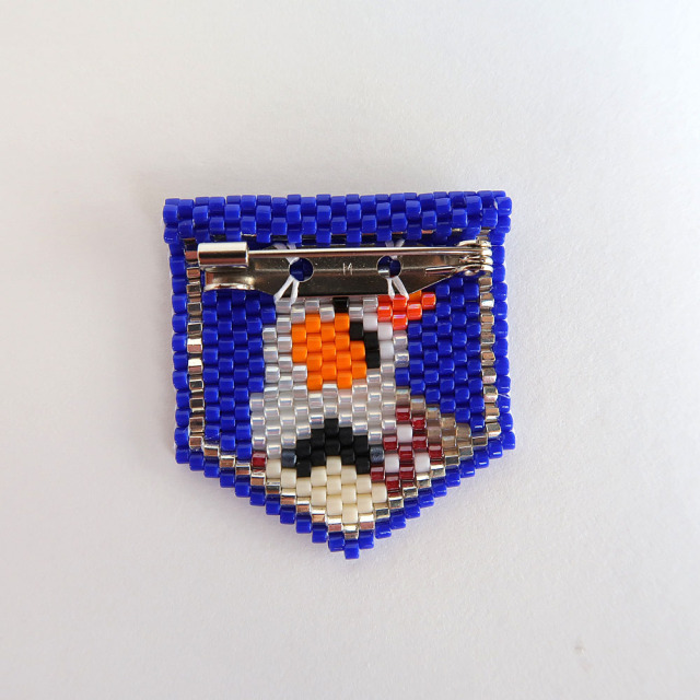 丈夫なナイロン糸でビーズをステッチしました。裏面にはシンプルな引っかけブローチ金具がついています。上下のフチは強化してありますが、引っかかり等にはご注意ください。