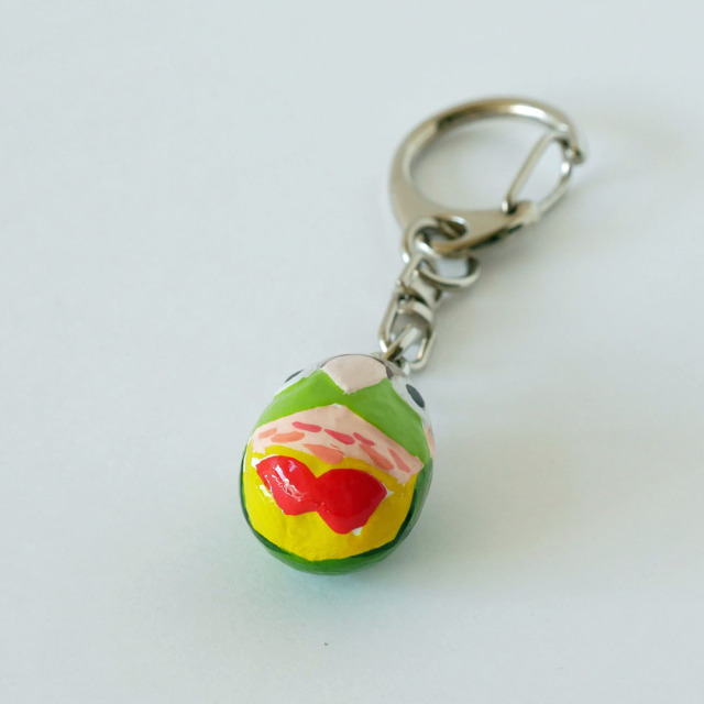 木製・アクリル絵の具・ポリウレタンニス仕上げです。部分的に彫りを入れて彩色しています。耐久性のあるニスで仕上げておりますが木製ですので強い衝撃などの破損には充分お気をつけください。