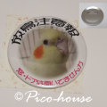 76mmサイズの大きな缶バッジです。日頃より、カーテンなどの目立つような場所に付けて、放鳥時に愛鳥さんを守って下さいね。同じデザインの缶マグネットタイプもあります。