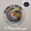 76mmサイズの大きな缶マグネットです。日頃より、玄関やドアなどの目立つような場所に付けて、放鳥時に愛鳥さんを守って下さいね。同じデザインの缶バッジタイプもあります。