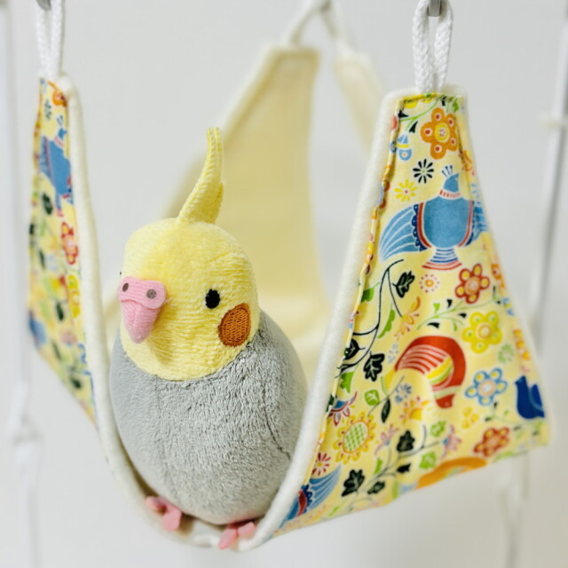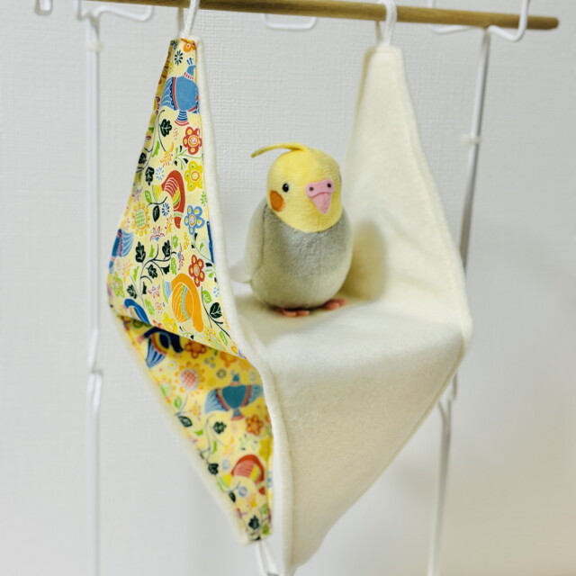 外布、綿生地。内布、フリース。薄くて軽量ですが、とても暖かく柔らかさも十分。リバーシブルでALLシーズン使用可。テントからハンモックまで、色々な使い方ができるバードテント。底板も外れお手入れ簡単。※取付用金具は、付属しておりません。※ぬいぐるみ、おもちゃは付属品ではありません。複数枚ご購入の場合は、個々により柄の出方が異なりますのでご了承ください。