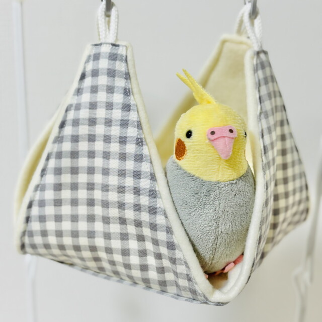 外布、綿生地。内布、フリース。薄くて軽量ですが、とても暖かく柔らかさも十分。リバーシブルでALLシーズン使用可。テントからハンモックまで、色々な使い方ができるバードテント。底板も外れお手入れ簡単。※取付用金具は、付属しておりません。※ぬいぐるみ、おもちゃは付属品ではありません。複数枚ご購入の場合は、個々により柄の出方が異なりますのでご了承ください。