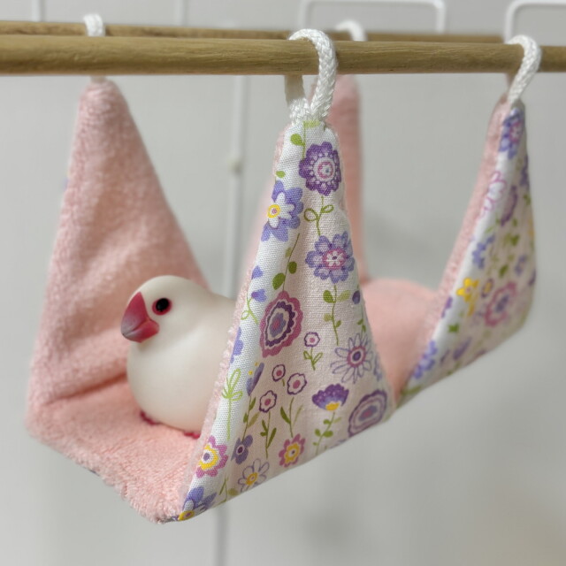 外布、綿生地。内布、ループ無しタオル。柔らかでフワフワ、暖かさもバッチリなバードテントです。リバーシブルでALLシーズン使用可。テントからハンモックまで、色々な使い方ができます。底板も外れお手入れ簡単。※取付用金具は、付属しておりません。※ぬいぐるみ、おもちゃは、付属品ではありません。複数枚ご購入の場合は、個々により柄の出方が異なりますのでご了承ください。