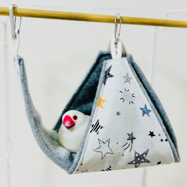 外布、綿生地。内布、フリース。薄くて軽量ですが、とても暖かく柔らかさも十分。リバーシブルでALLシーズン使用可。テントからハンモックまで、色々な使い方ができるバードテント。底板も外れお手入れ簡単。※取付用金具は、付属しておりません。※ぬいぐるみ、おもちゃは付属品ではありません。複数枚ご購入の場合は、個々により柄の出方が異なりますのでご了承ください。