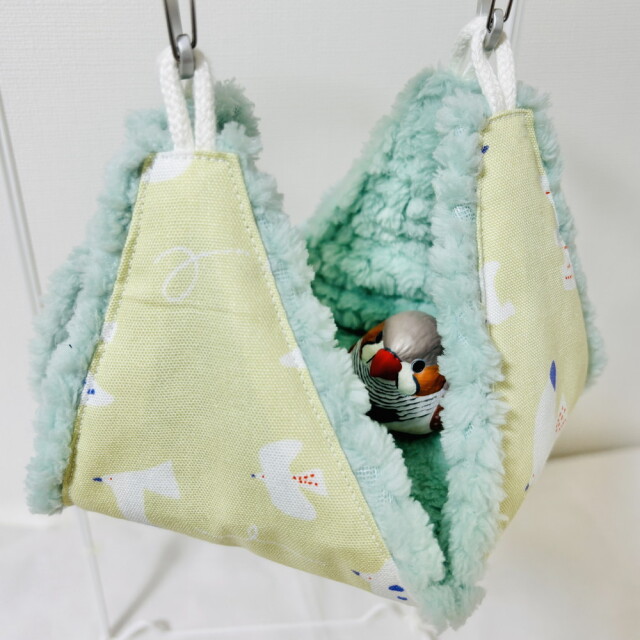 外布、綿生地。内布、ワッフルボア。柔らかくてフワフワ、毛足が長めで ポコポコしたデザインが可愛らしい。リバーシブルでALLシーズン使用可。テントからハンモックまで幅広く使えるバードテント。底板も外れお手入れ簡単。※取付用金具は、付属しておりません。※ぬいぐるみ、おもちゃは、付属品ではありません。複数枚ご購入の場合は、個々により柄の出方が異なりますのでご了承ください。