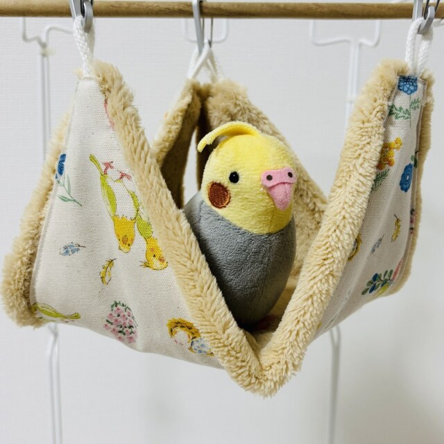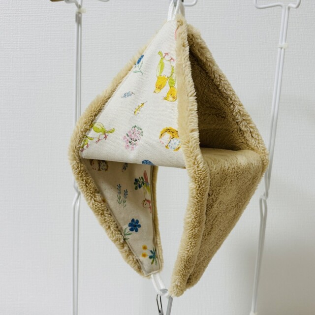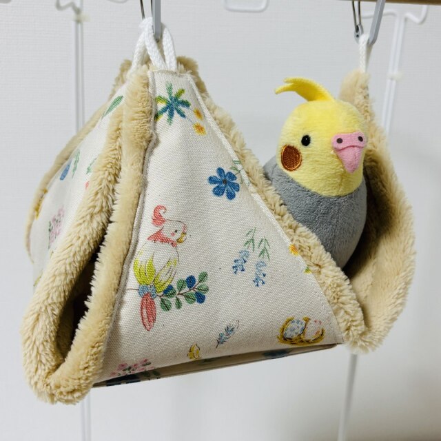 外布、綿生地。内布、猫ボア。猫の毛並みをイメージしたふわふわしたボア生地。リバーシブルでALLシーズン使用可。テントからハンモックまで幅広く使えるバードテント。底板も外れお手入れ簡単。※取付用金具は、付属しておりません。※ぬいぐるみ、おもちゃは、付属品ではありません。複数枚ご購入の場合は、個々により柄の出方が異なりますのでご了承ください。
