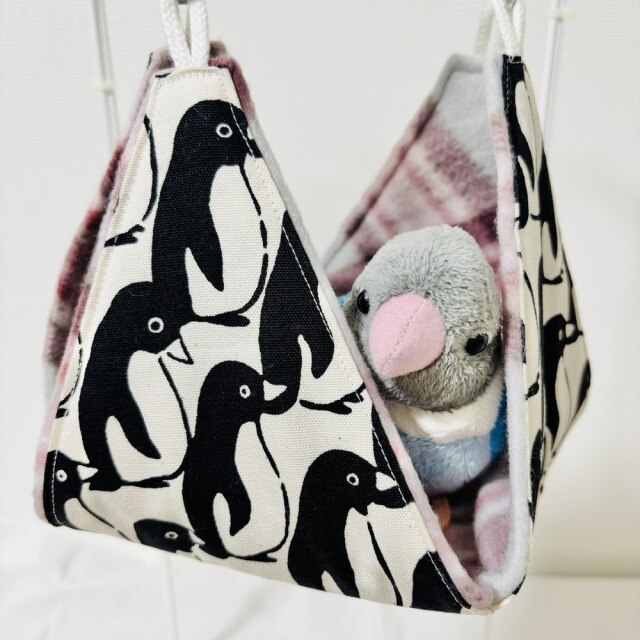 外布、綿生地。内布、フリース。薄くて軽量ですが、とても暖かく柔らかさも十分。リバーシブルでALLシーズン使用可。テントからハンモックまで、色々な使い方ができるバードテント。底板も外れお手入れ簡単。※取付用金具は、付属しておりません。※ぬいぐるみ、おもちゃは付属品ではありません。複数枚ご購入の場合は、個々により柄の出方が異なりますのでご了承ください。