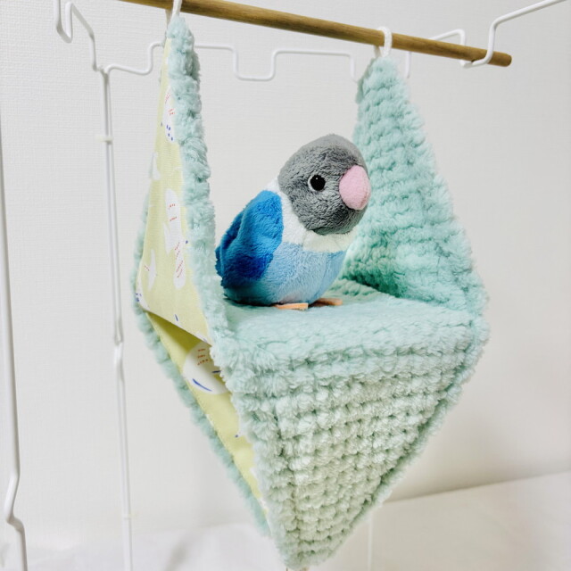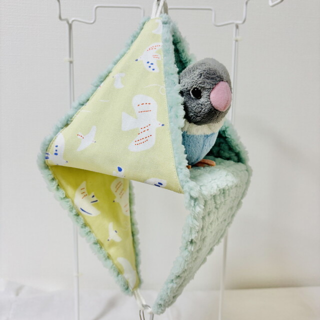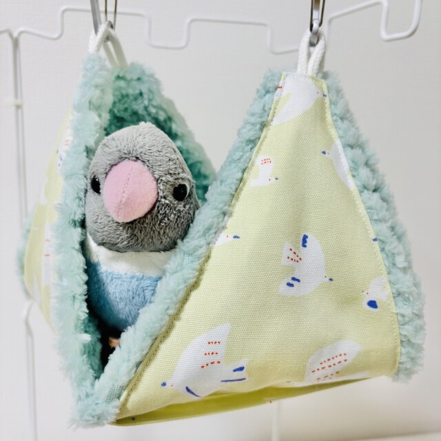 外布、綿生地。内布、ワッフルボア。柔らかくてフワフワ、毛足が長めで ポコポコしたデザインが可愛らしい。リバーシブルでALLシーズン使用可。テントからハンモックまで幅広く使えるバードテント。底板も外れお手入れ簡単。※取付用金具は、付属しておりません。※ぬいぐるみ、おもちゃは、付属品ではありません。複数枚ご購入の場合は、個々により柄の出方が異なりますのでご了承ください。