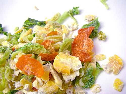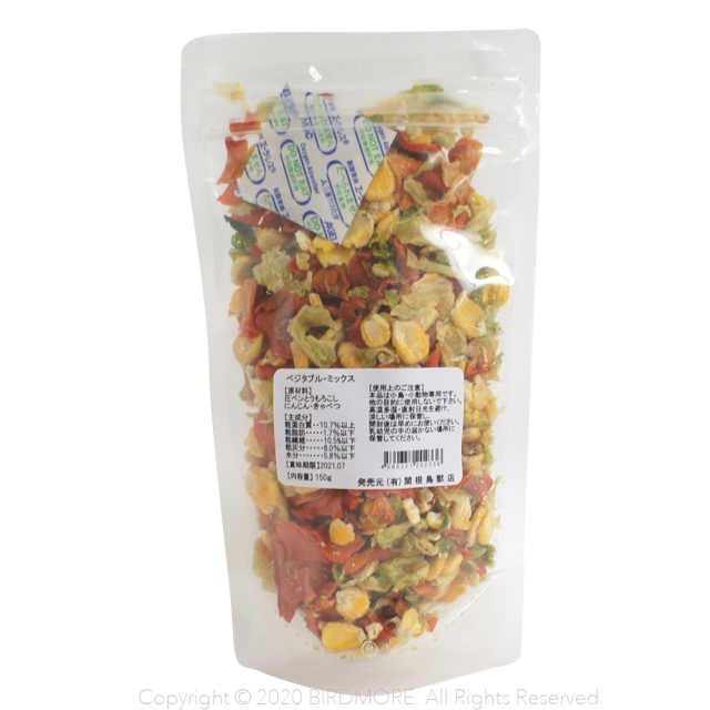 乾燥させたニンジン・キャベツ・圧ペンコーンのミックスです。手軽に野菜を与えることが出来ます。