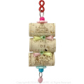 ワインコルクが3個連なった小ぶりなおもちゃ。間には鳥さんが好きな触感のストローの端切れが折り重なるように配置されています。
