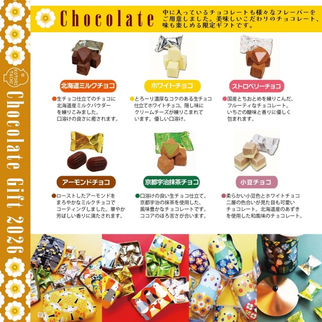 【宇治抹茶チョコ】砂糖(外国製造・国内製造)、植物油脂、乳糖、ココアバター、全粉乳、脱脂粉乳、抹茶、ココアパウダー/乳化剤、香料(一部に乳成分・大豆を含む)