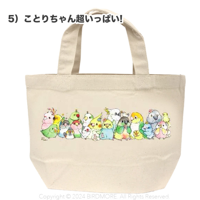 いつでもどこでも小鳥と一緒♪かわいい小鳥デザインのランチトートバッグです。