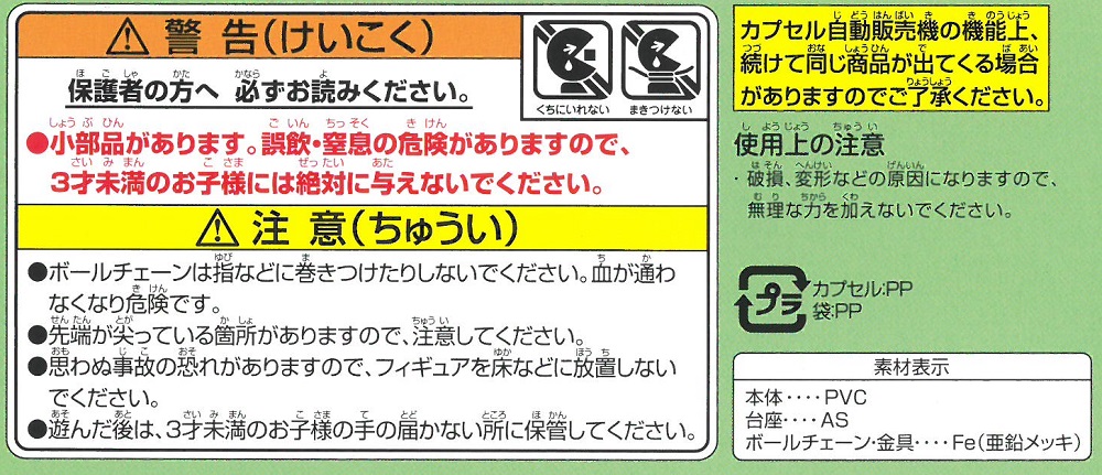 材質/本体:PVC 台座:AS ボールチェーン・金具:Fe(亜鉛メッキ)