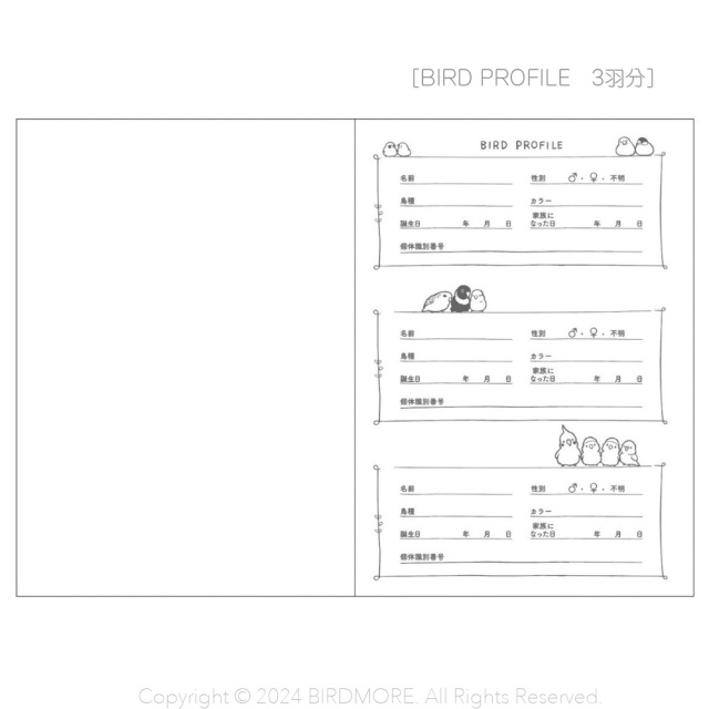 鳥さんプロフィール欄は3羽まで記入できますがもっとたくさんの方は記入しなくてもいいし1羽1冊にしても◎