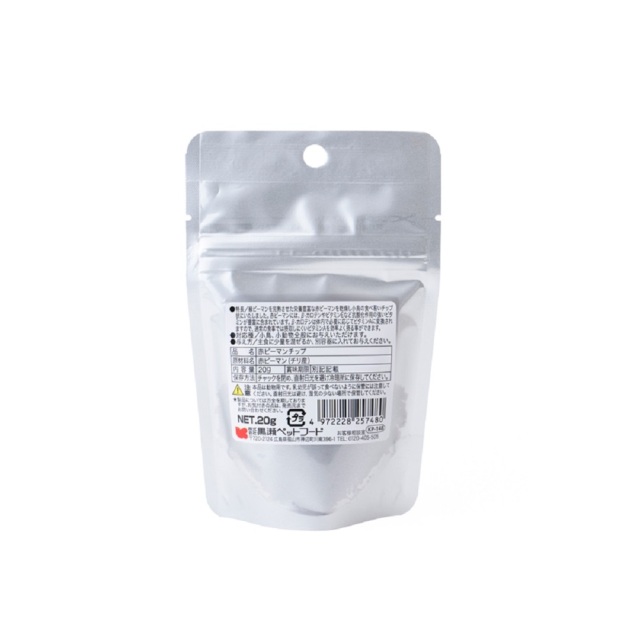 緑ピーマンを完熟させた栄養豊富な赤ピーマンを乾燥し小鳥の食べ易いチップ状にいたしました。