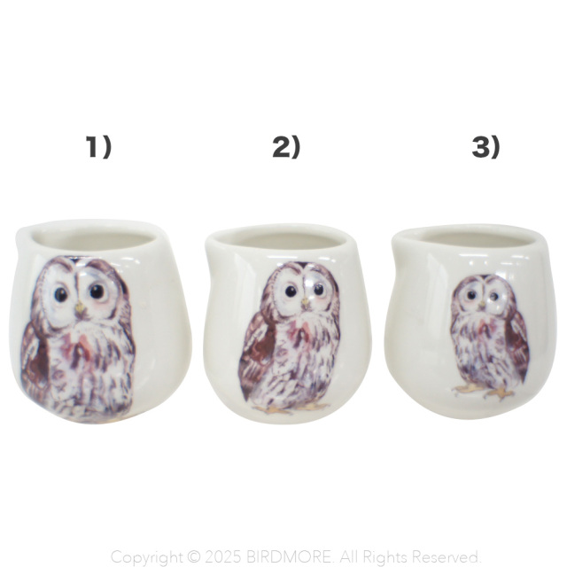 通販コーナートップ鳥グッズ 食器・キッチン用品 9999456【TORINKO】ミルクピッチャー/フクロウ 3種 価格: ¥385 (税込) [ポイント還元 3ポイント~] 販売期間: 数量: 個 柄の大きさ在庫購入1)大1個 2)中1個 3)小1個 柄の大きさ在庫購入1)大1個 2)中1個 3)小1個 特定商法・返品についての詳細はこちら 9999456 フクロウのイラストが入ったミルクピッチャーです。 サイズ/直径約6cm×高さ約6cm 素材/磁器